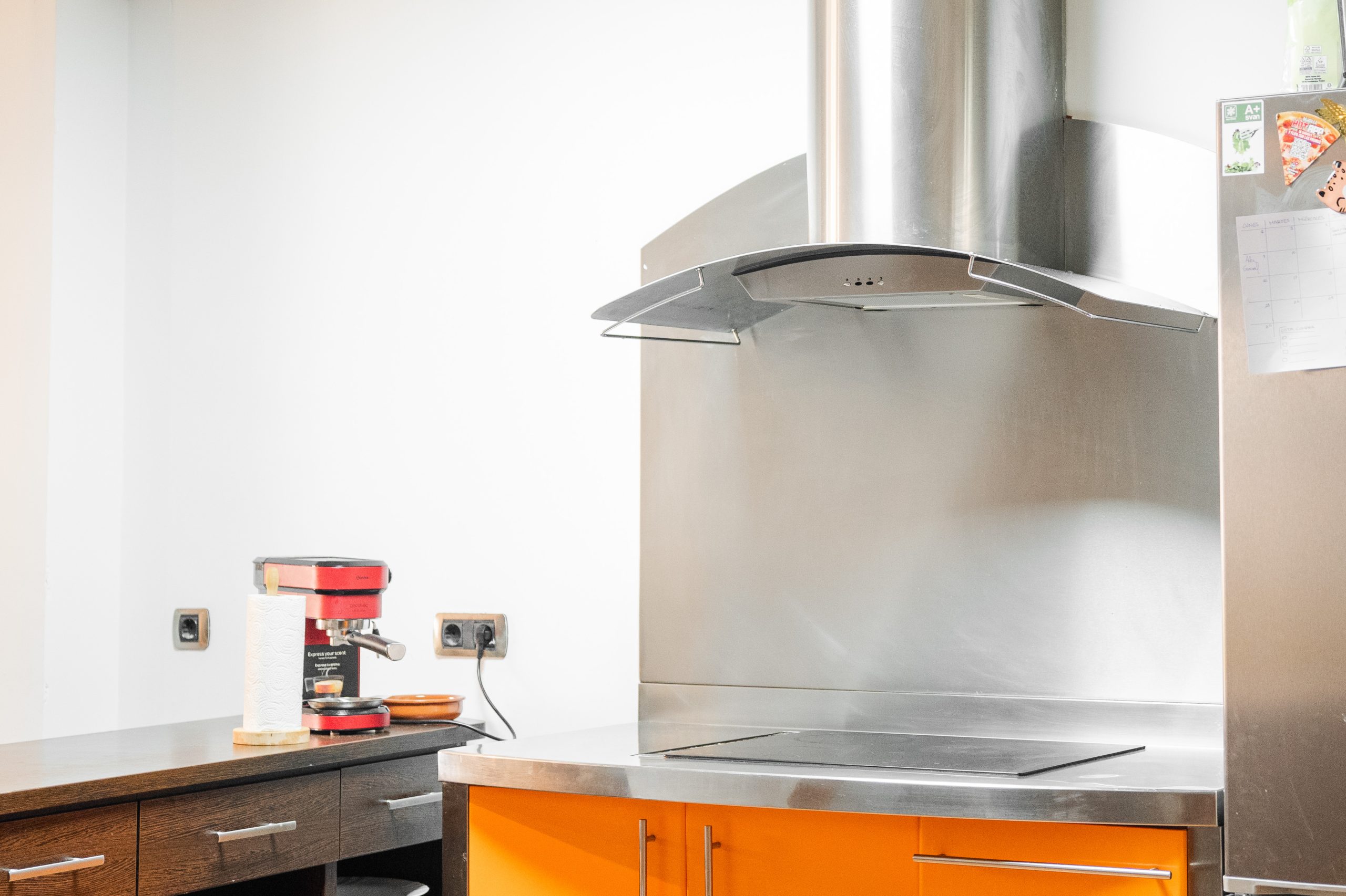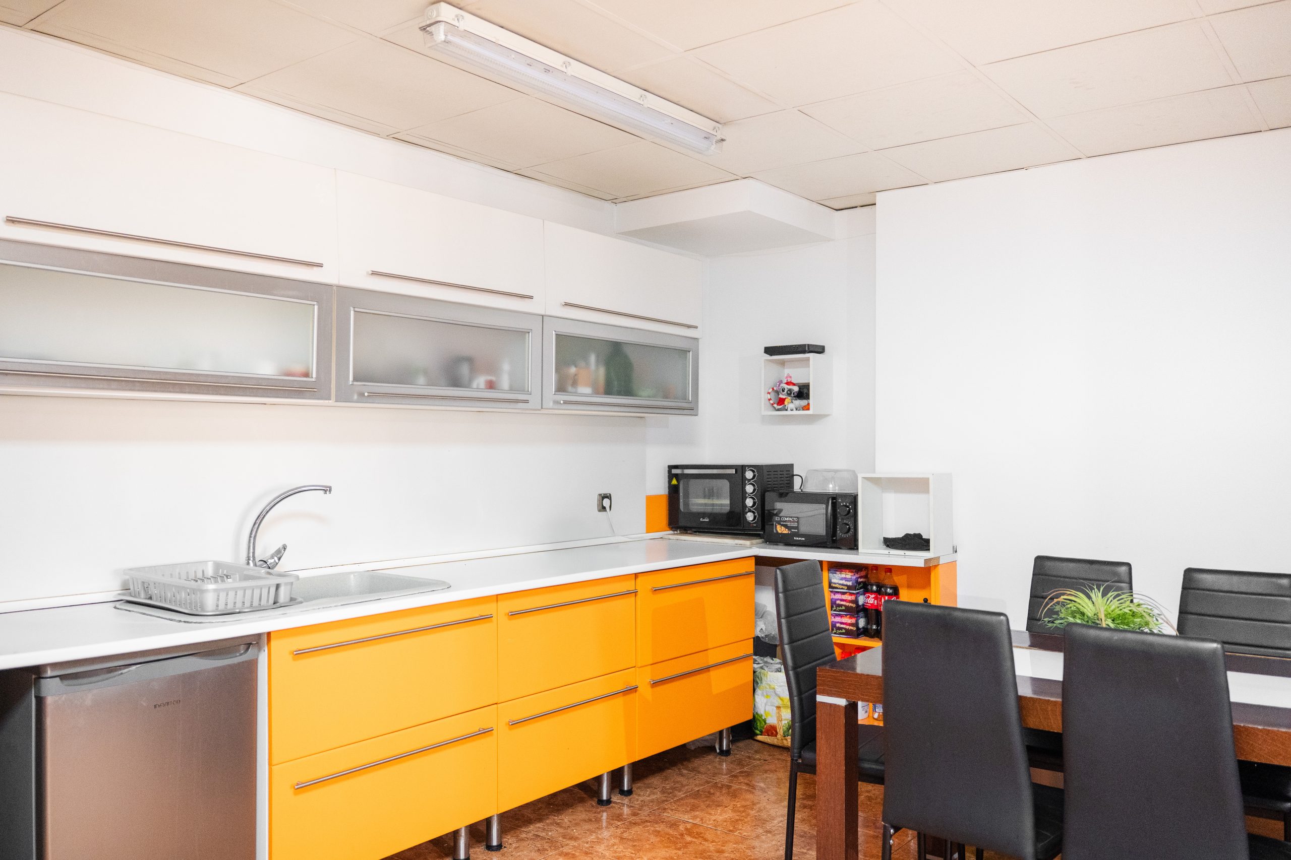 Cocina moderna y equipada: Con un diseño actual y vibrante, los armarios rojos aportan personalidad y alegría al espacio. Está equipada con todo lo necesario (horno, vitro, extractor, nevera, mesa comedor para 4) y tiene acceso directo a la terraza, facilitando la ventilación y la luz natural.